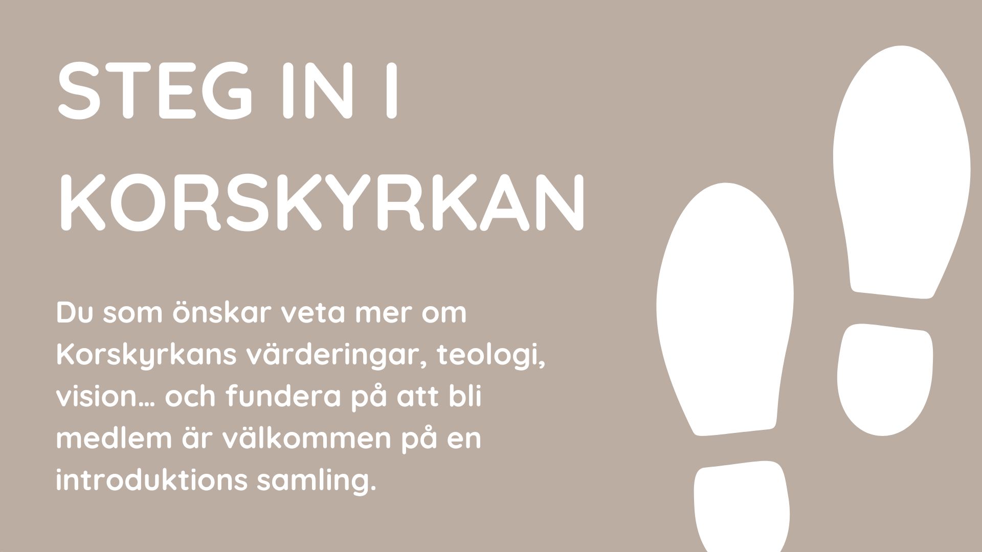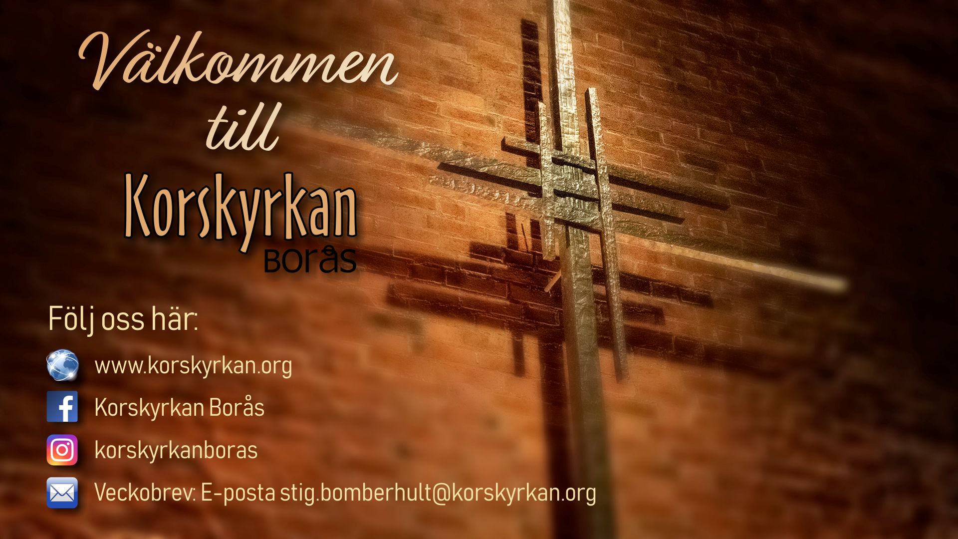 Vi vill att Korskyrkan ska vara en generös gemenskap med utrymme för så väl tro som sökande, för så väl kampen med livet som för glädjen över allt, för så väl mötet människor emellan liksom för det stora och viktiga gudsmötet. Därför är våra samlingar öppna för alla som vill komma. Se kalendern för uppdateringar.